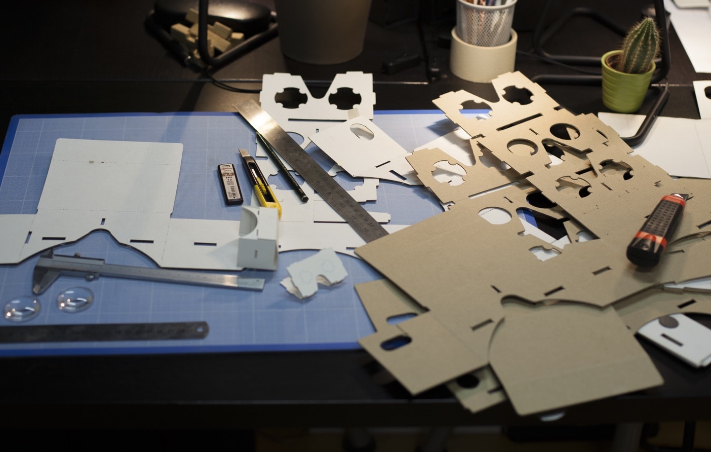 The design was based on the Google Cardboard v2.1, and then the dimensions and the assembly diagram were substantially modified. In addition, to get people seeing a better image 37 mm diameter lenses were installed.